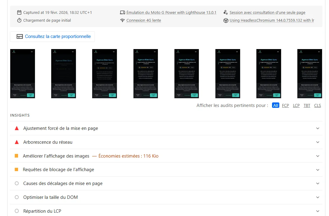L’algorithme Google combine ces informations pour identifier les problèmes critiques et améliorer votre score de performance. Les recommandations sont classées selon leur impact estimé sur les Core Web Vitals, permettant de prioriser efficacement vos efforts d’optimisation speed.